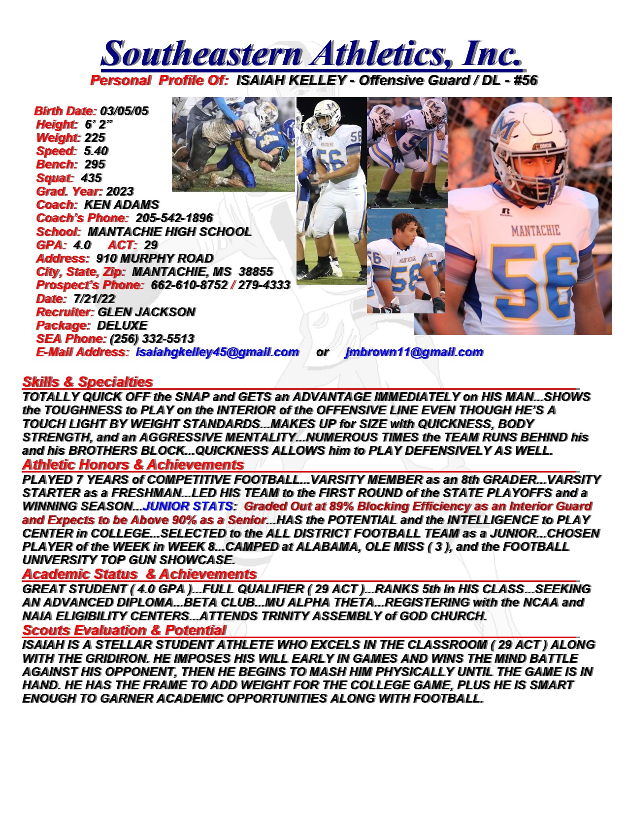 Isaiah Kelley, 2023, Offensive Guard / DL, Mantachie HS, MS
