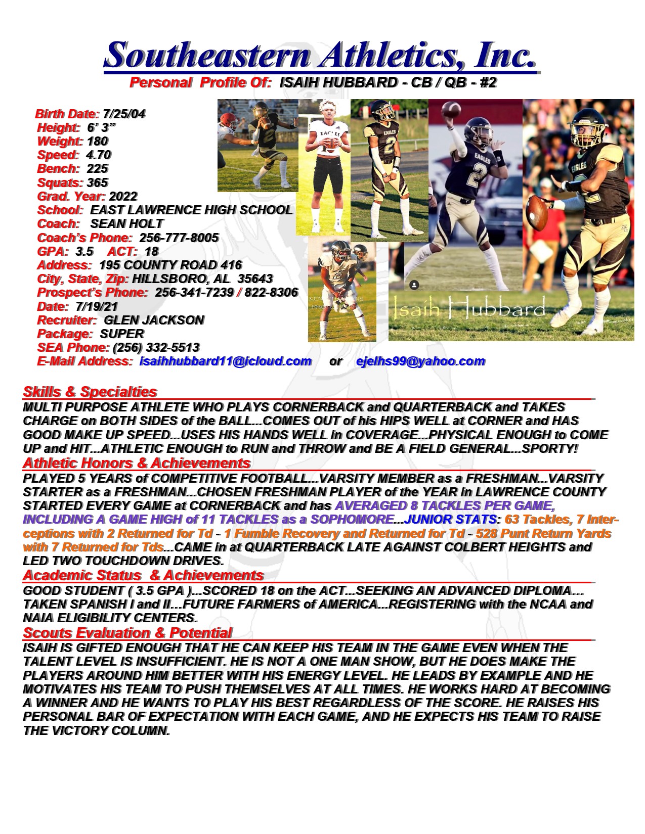 Isaih Hubbard, 2022, CB / QB, East Lawrence HS, AL