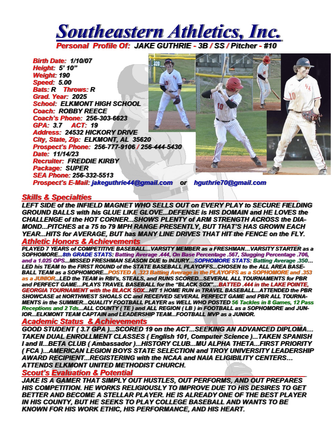 Jake Guthrie, 2025, 3B / SS / Pitcher, Elkmont HS, AL