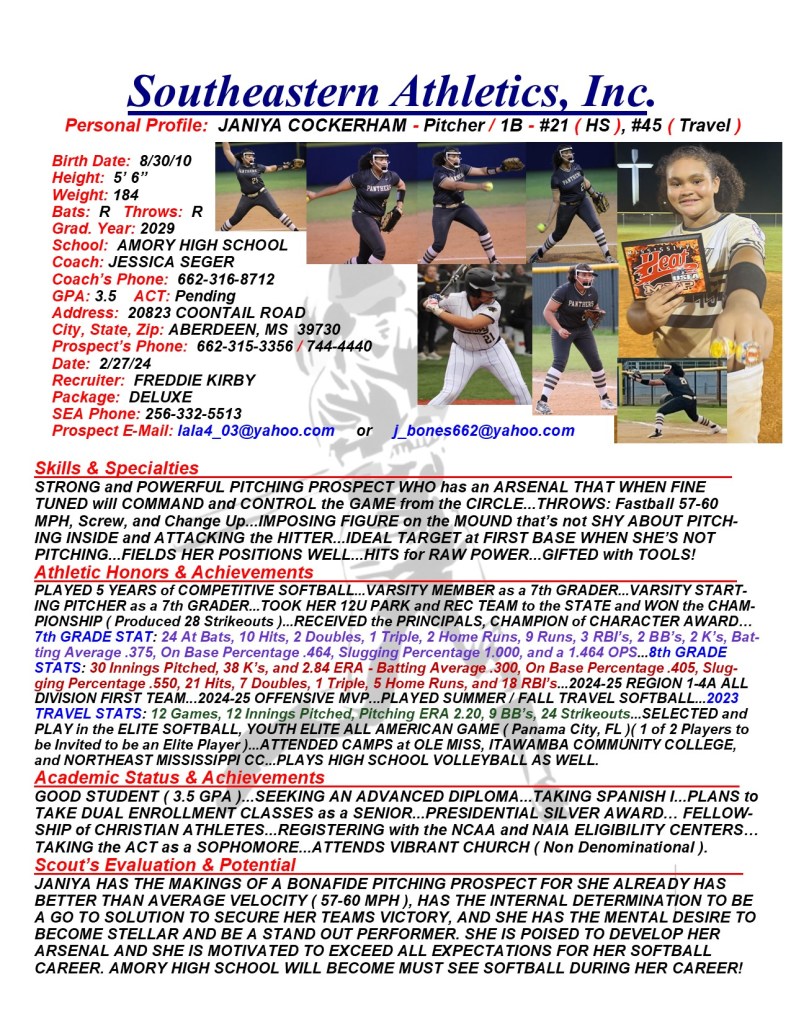 Janiya Cockerham, 2029, Pitcher / 1B, Amory HS, MS