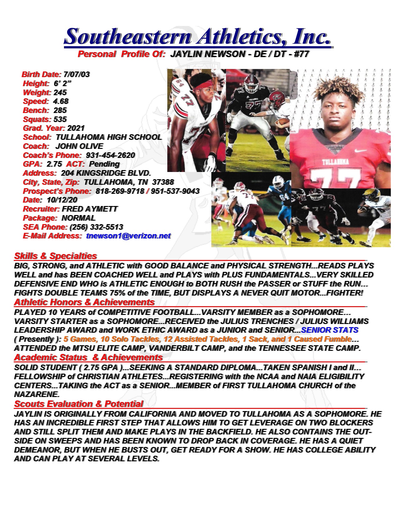 Jaylin Newson, 2021, DE / DT, Tullahoma HS, TN