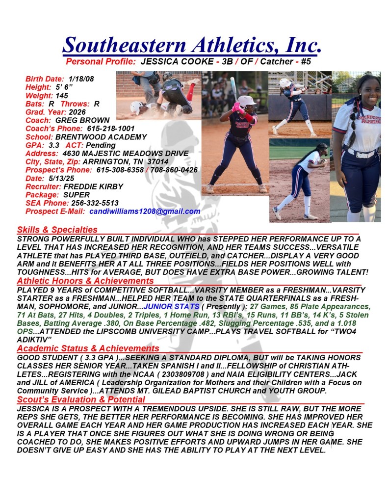 Jessica Cooke, 2026, OF / 3B / Catcher, Brentwood Academy, TN