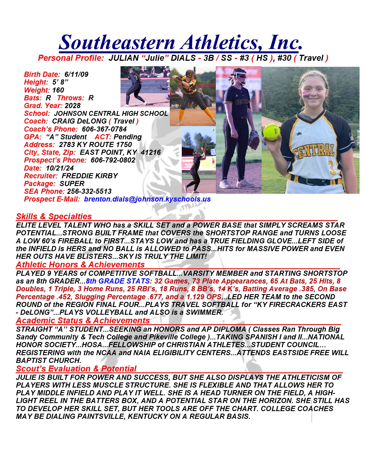 Julian “Julie” Dials, 2028, 3B / SS, Johnson Central HS, KY