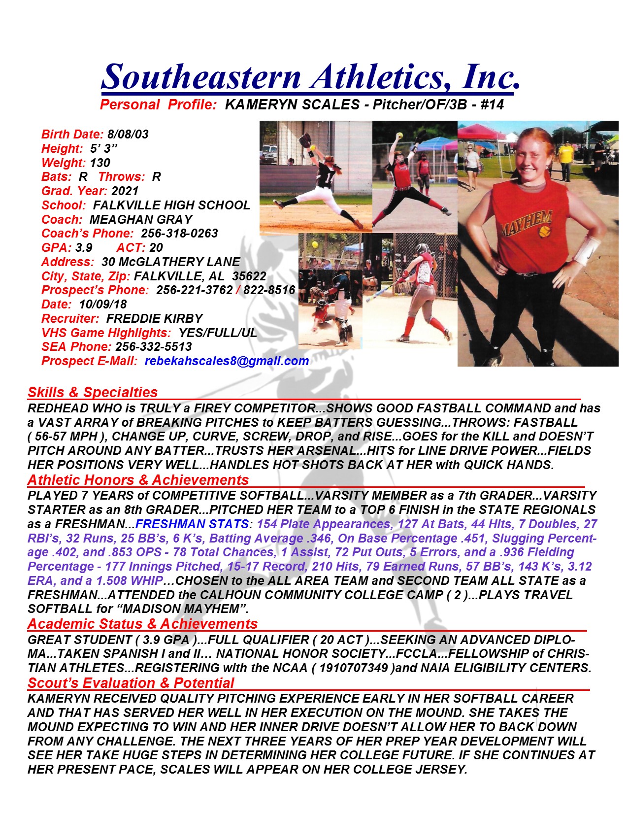 Kameryn Scales, 2021, Pitcher/OF/3B, Falkville HS, AL