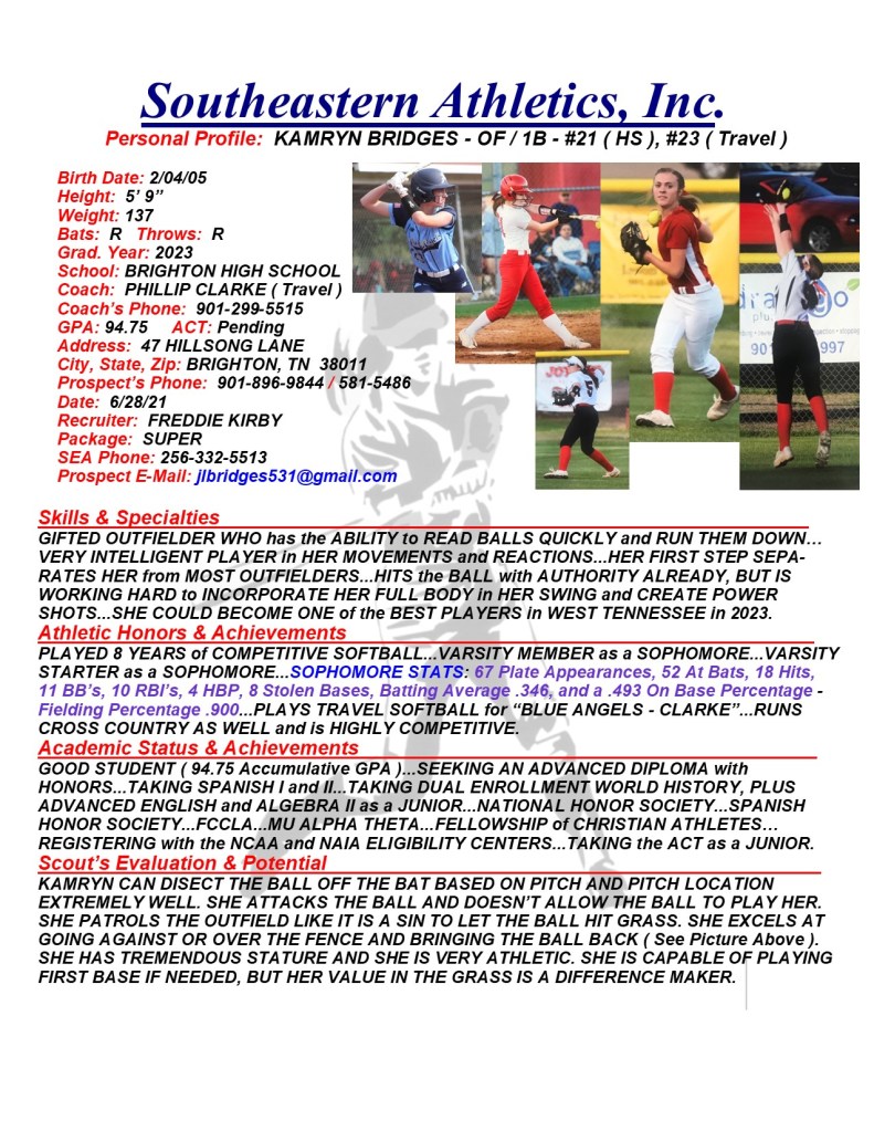 Kamryn Bridges, 2023, OF / 1B, Brighton HS, TN
