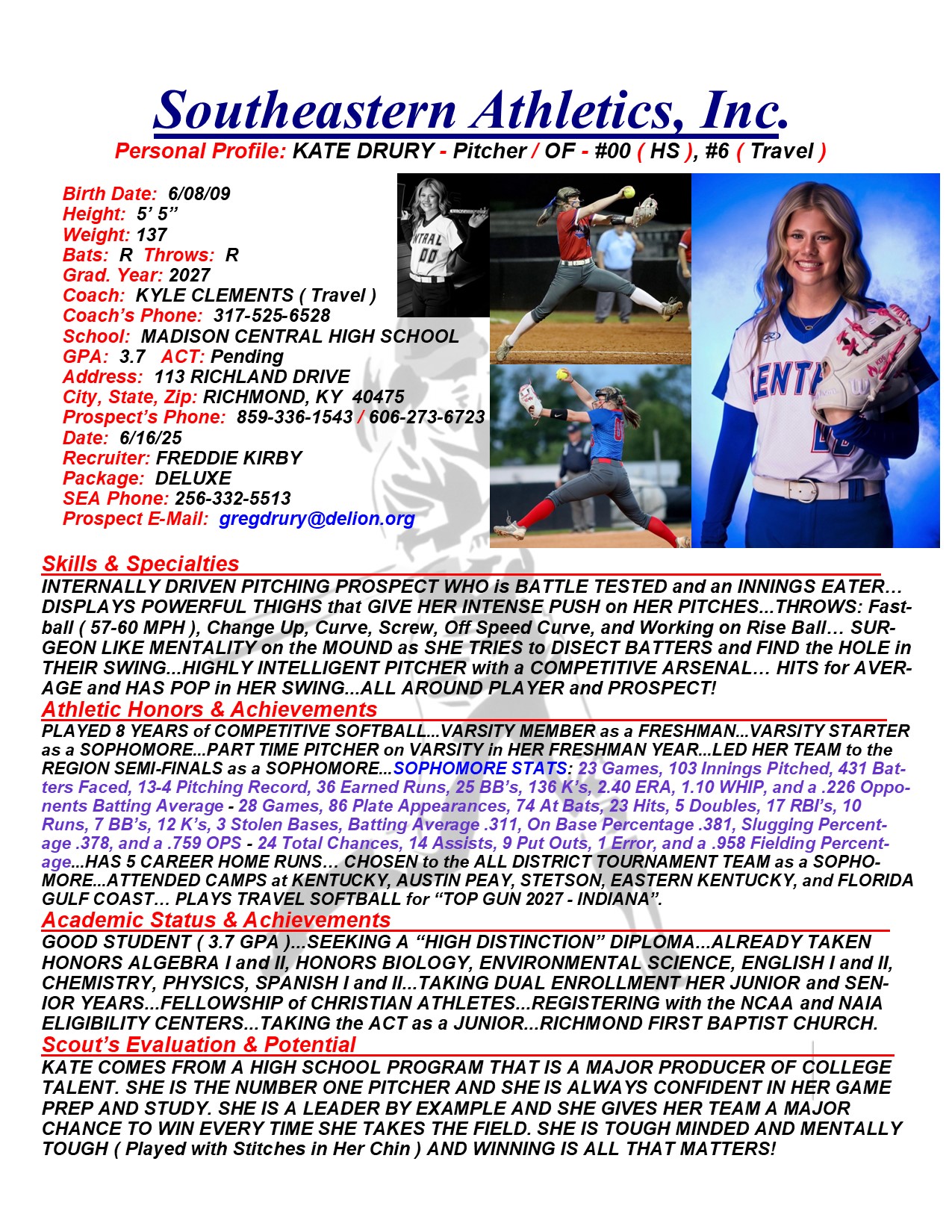 Kate Drury, 2027, Pitcher / OF, Madison Central HS, KY