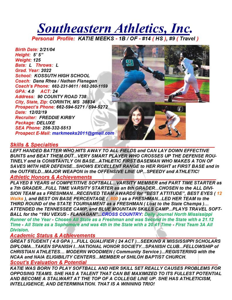 Katie Meeks, 2022, 1B / OF, Kossuth HS, MS
