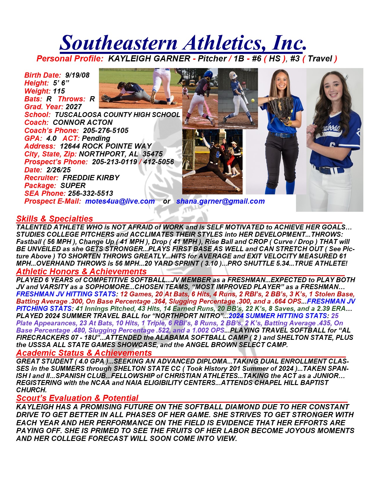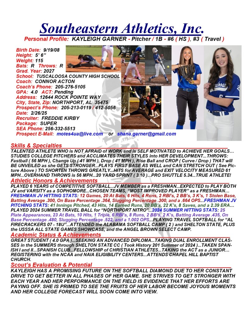Kayleigh Garner, 2027, Pitcher / 1B, Tuscaloosa County HS, AL