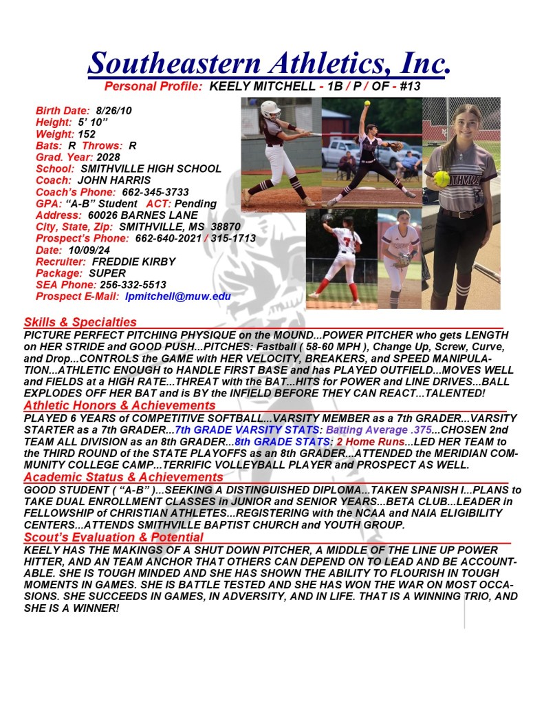 Keely Mitchell, 2028, 1B / Pitcher / OF, Smithville HS, MS