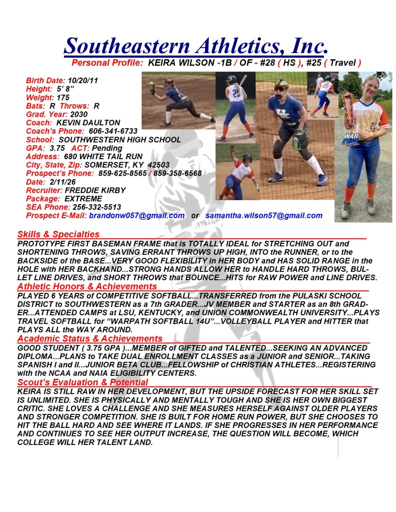 Keira Wilson, 2030, 1B / OF – Southwestern HS, KY