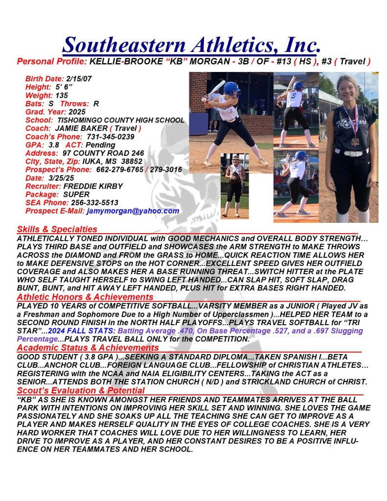 Kellie-Brooke “KB” Morgan, 2025, 3B / OF, Tishomingo County HS, MS