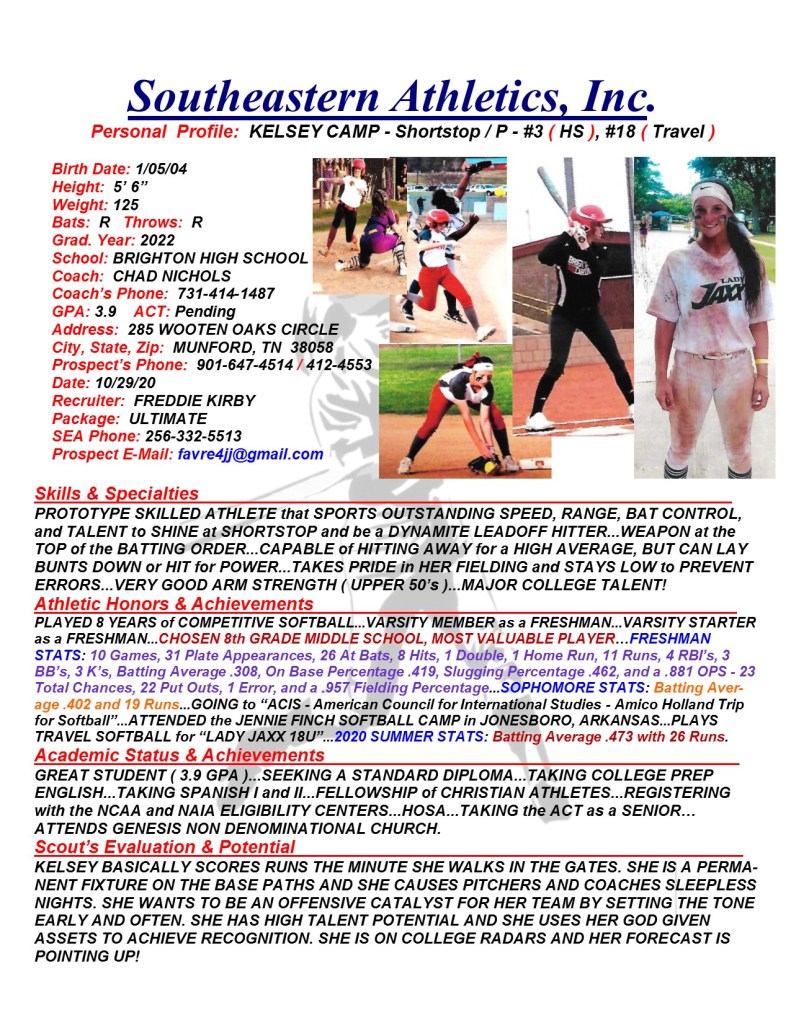 Kelsey Camp, 2022, Shortstop / P, Brighton HS, TN