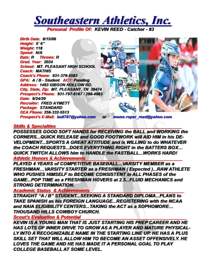 Kevin Reed, 2024, Catcher, Mt. Pleasant HS, TN