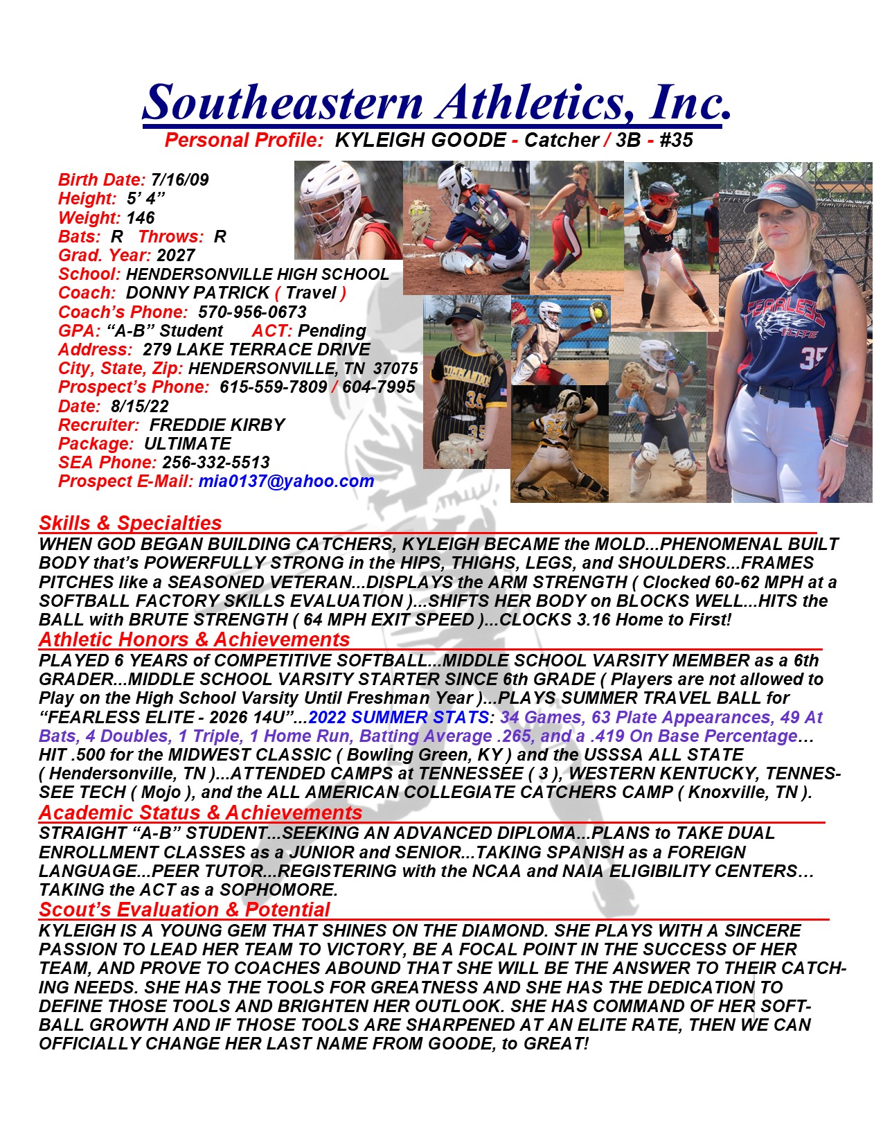 Kyleigh Goode, 2027, Catcher / 3B, Hendersonville HS, TN