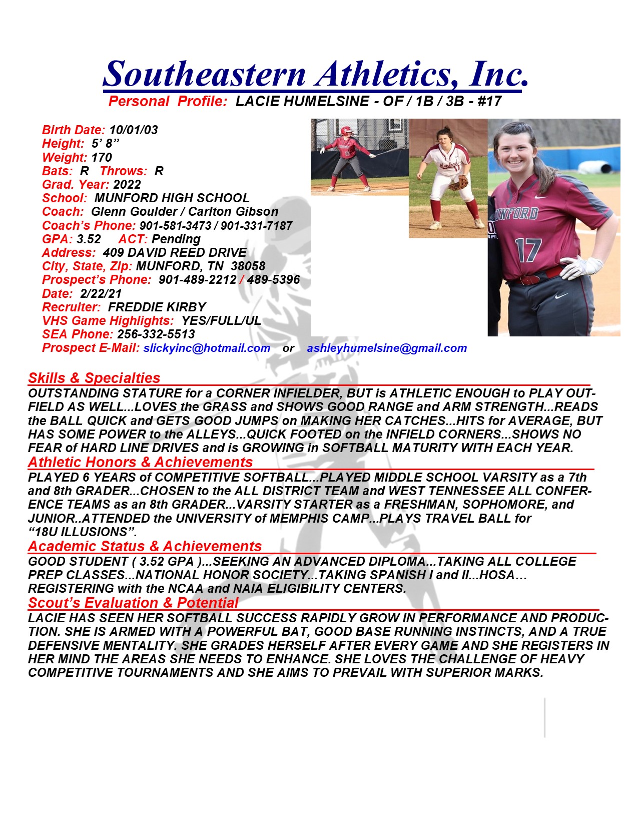 Lacie Humelsine, 2022, OF / 1B / 3B, Munford HS, TN