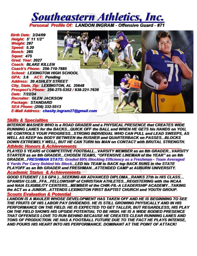 Landon Ingram, 2027, Offensive Guard, Lexington HS, AL
