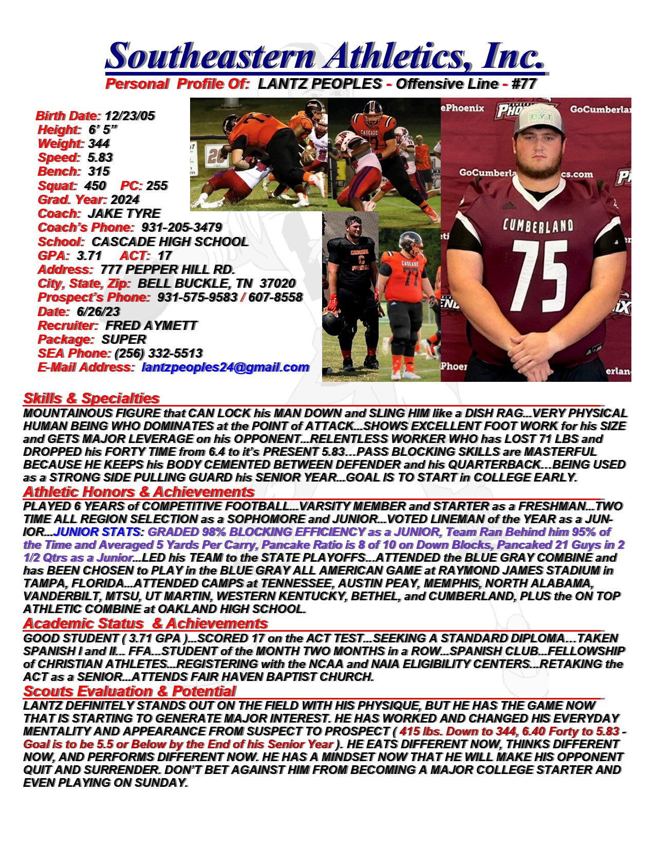Lantz Peoples, 2024, Offensive Lineman, Cascade HS, TN