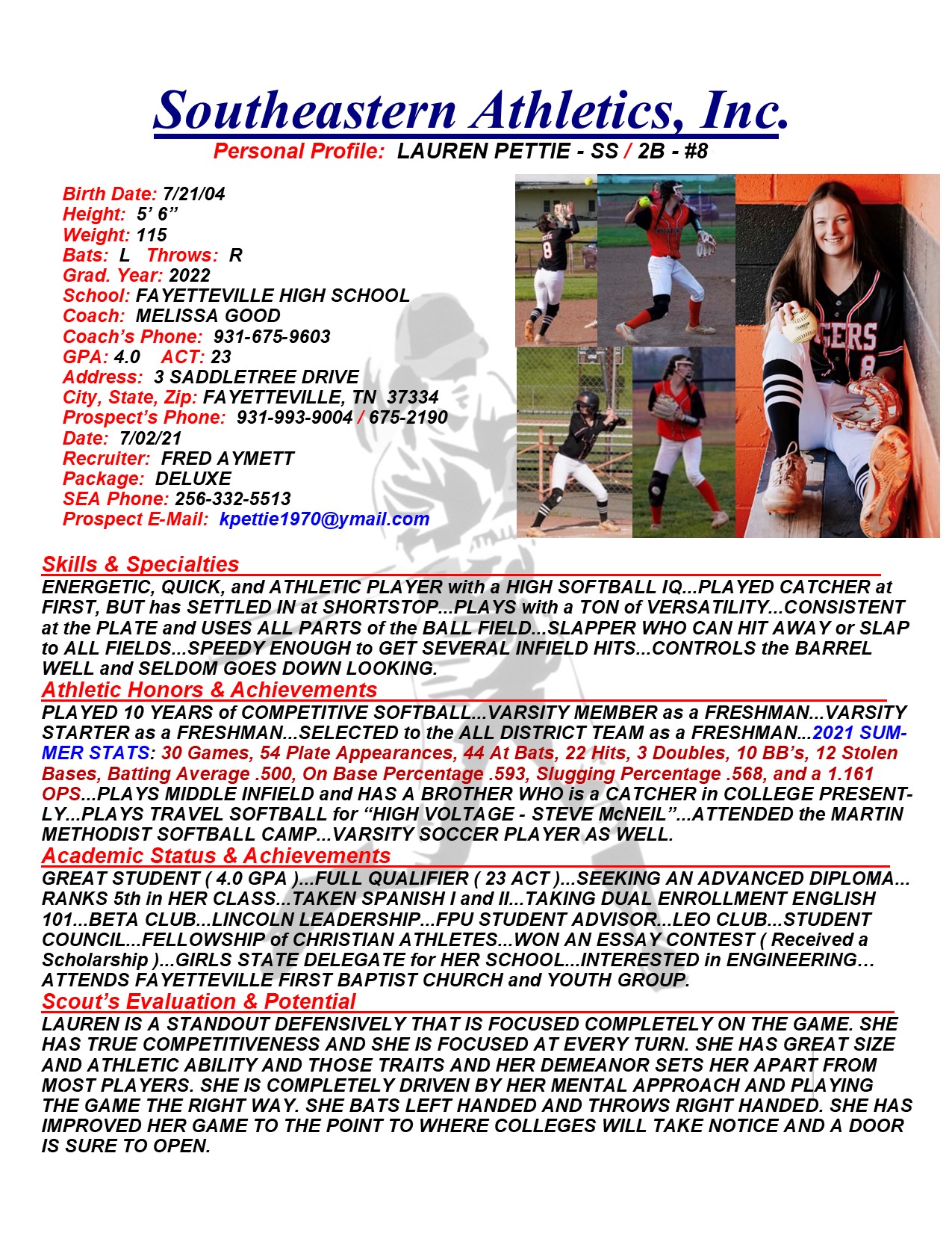 Lauren Pettie, 2022, SS / 2B, Fayetteville HS, TN