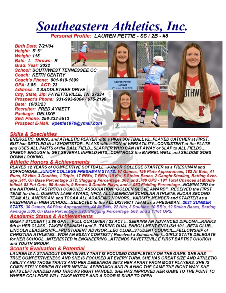 Lauren Pettie, 2024, SS / 2B, Southwest Tennessee CC, TN