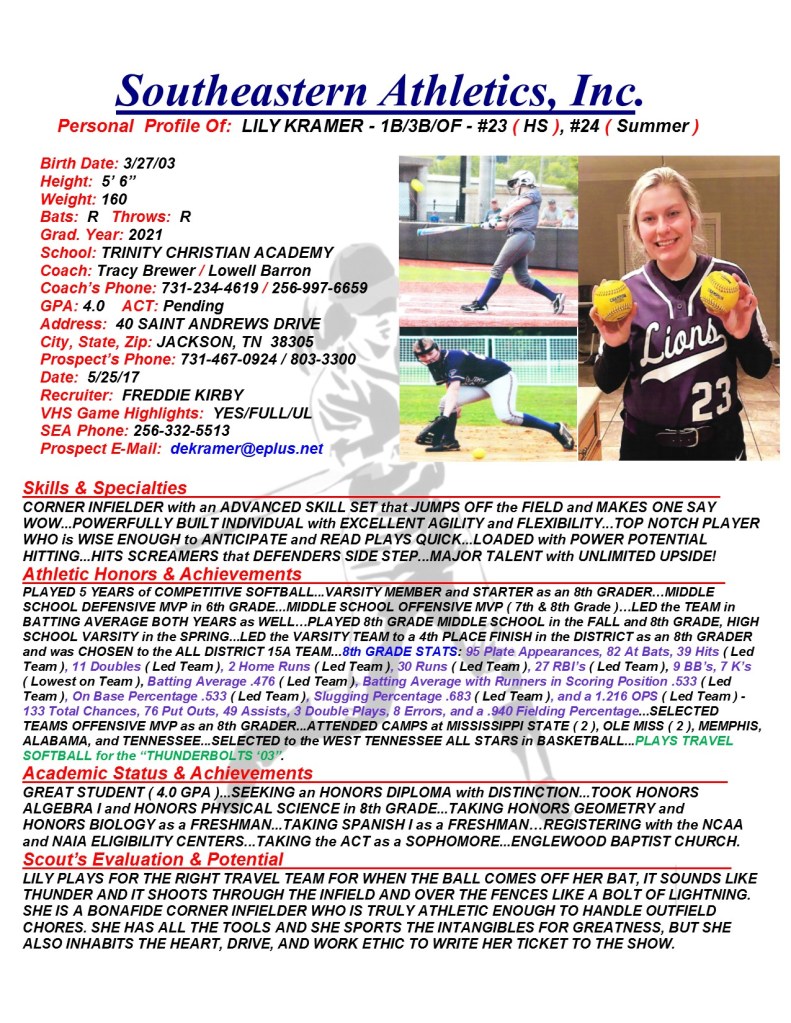 Lily Kramer, 2021, 1B / 3B / OF, Trinity Christian Academy, TN