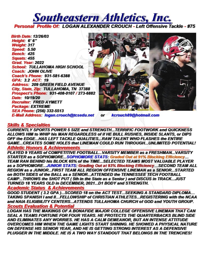 Logan Crouch, 2022, Left Offensive Tackle, Defensive Tackle, Tullahoma HS, TN