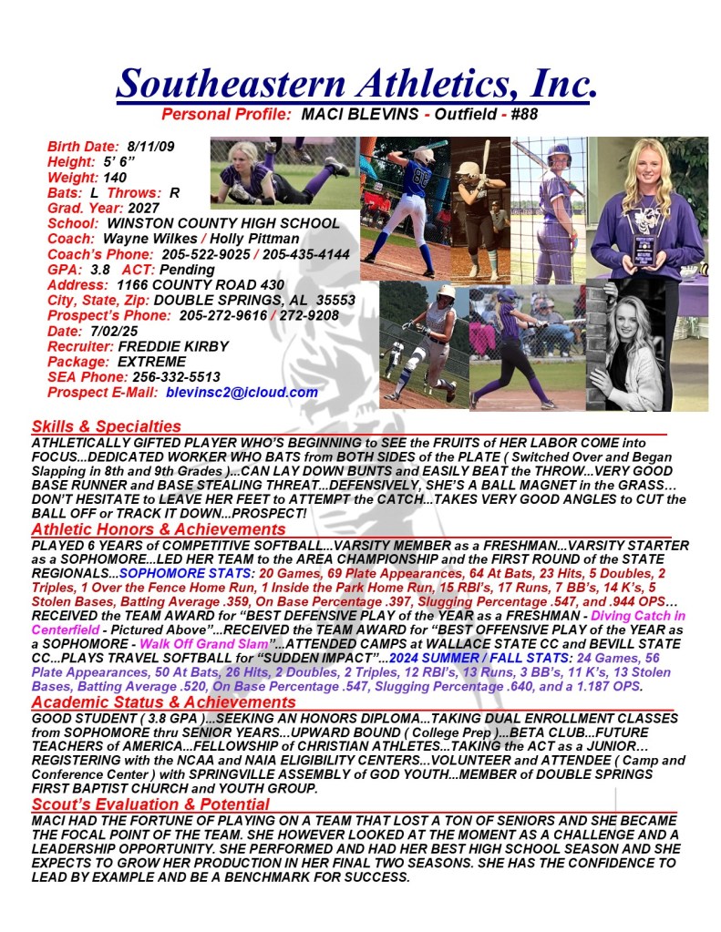 Maci Blevins, 2027, Outfield, Winston County HS, AL