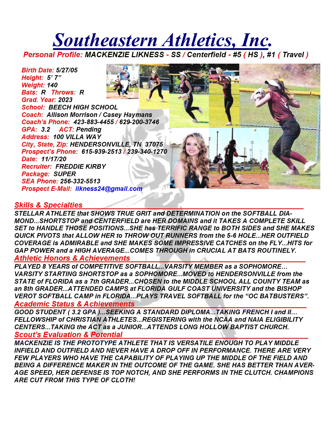 Mackenzie Likness, 2023, SS / Centerfield, Beech HS, TN