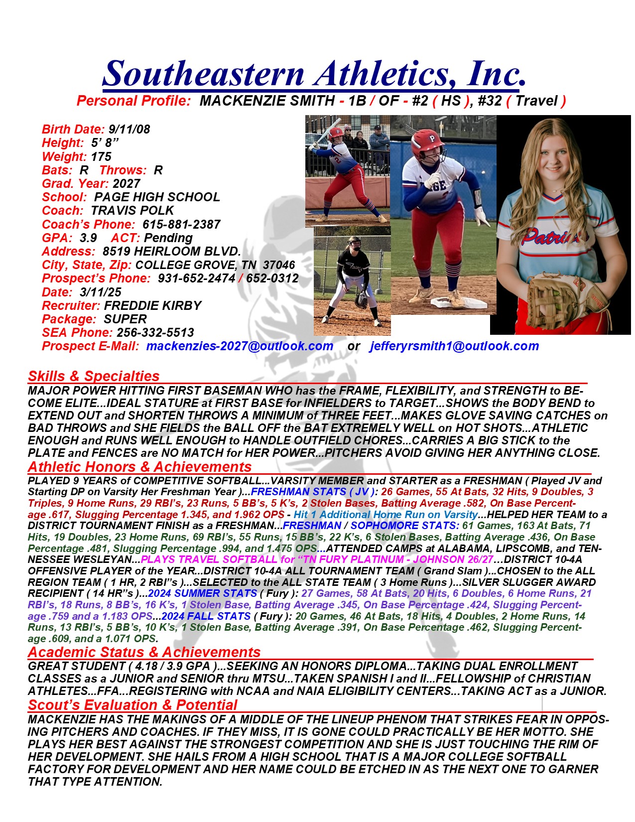Mackenzie Smith, 2027, 1B / OF, Page HS, TN