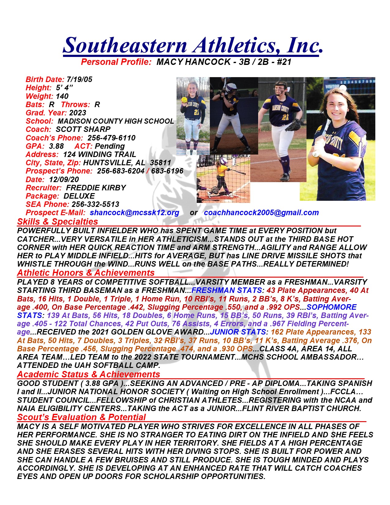 Macy Hancock, 2023, 3B / 2B, Madison County HS, AL