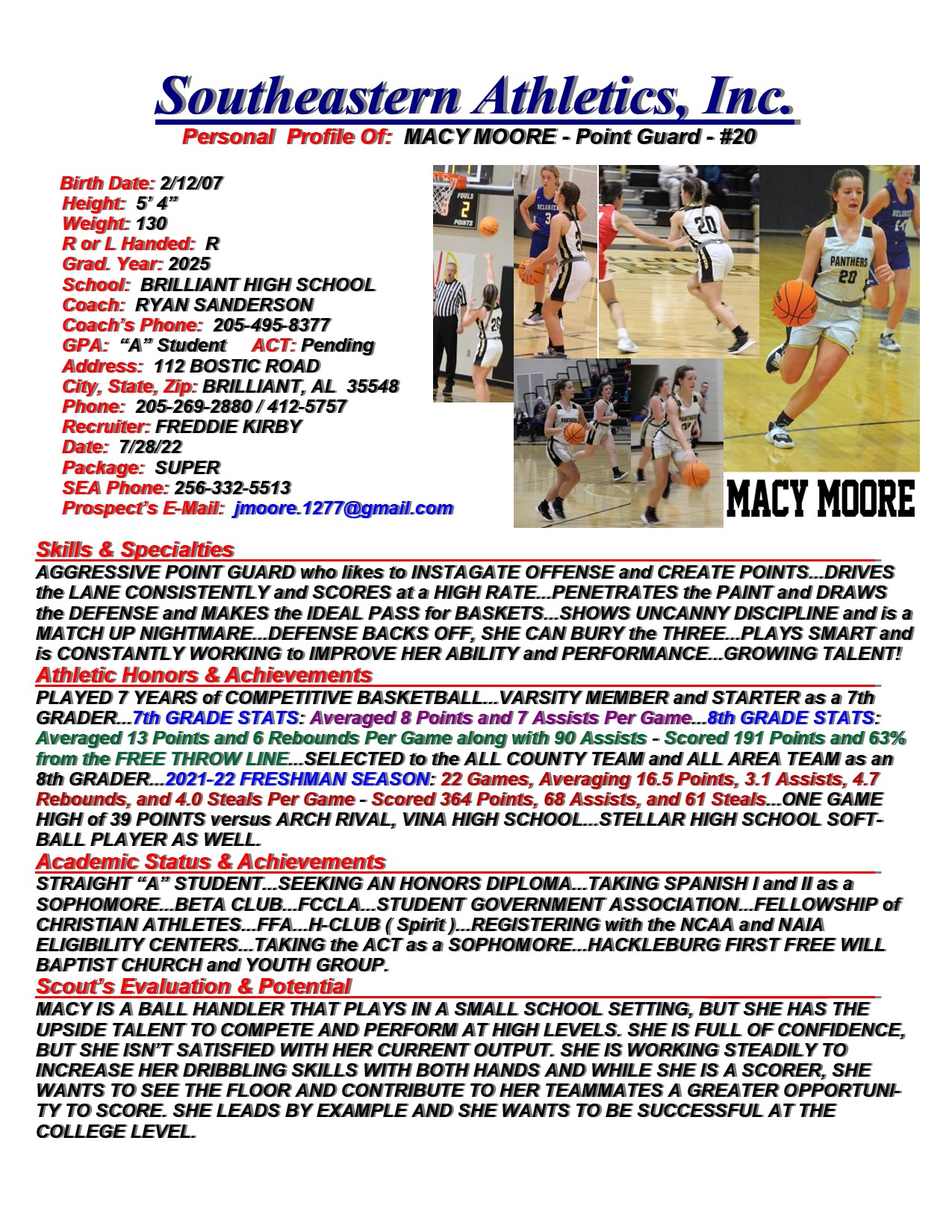 Macy Moore, 2025, Point Guard, Brilliant HS, AL