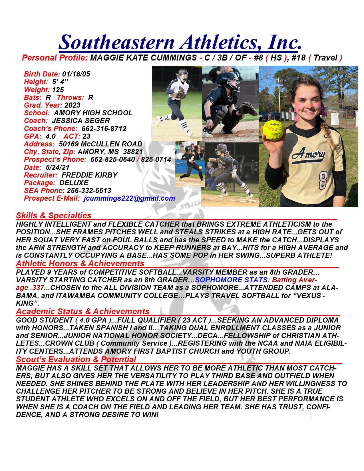 Maggie Kate Cummings, 2023, Catcher / 3B / OF, Amory High School, MS