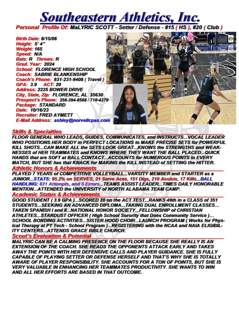MaLyric Scott, 2024, Setter / Defense, Florence HS, AL