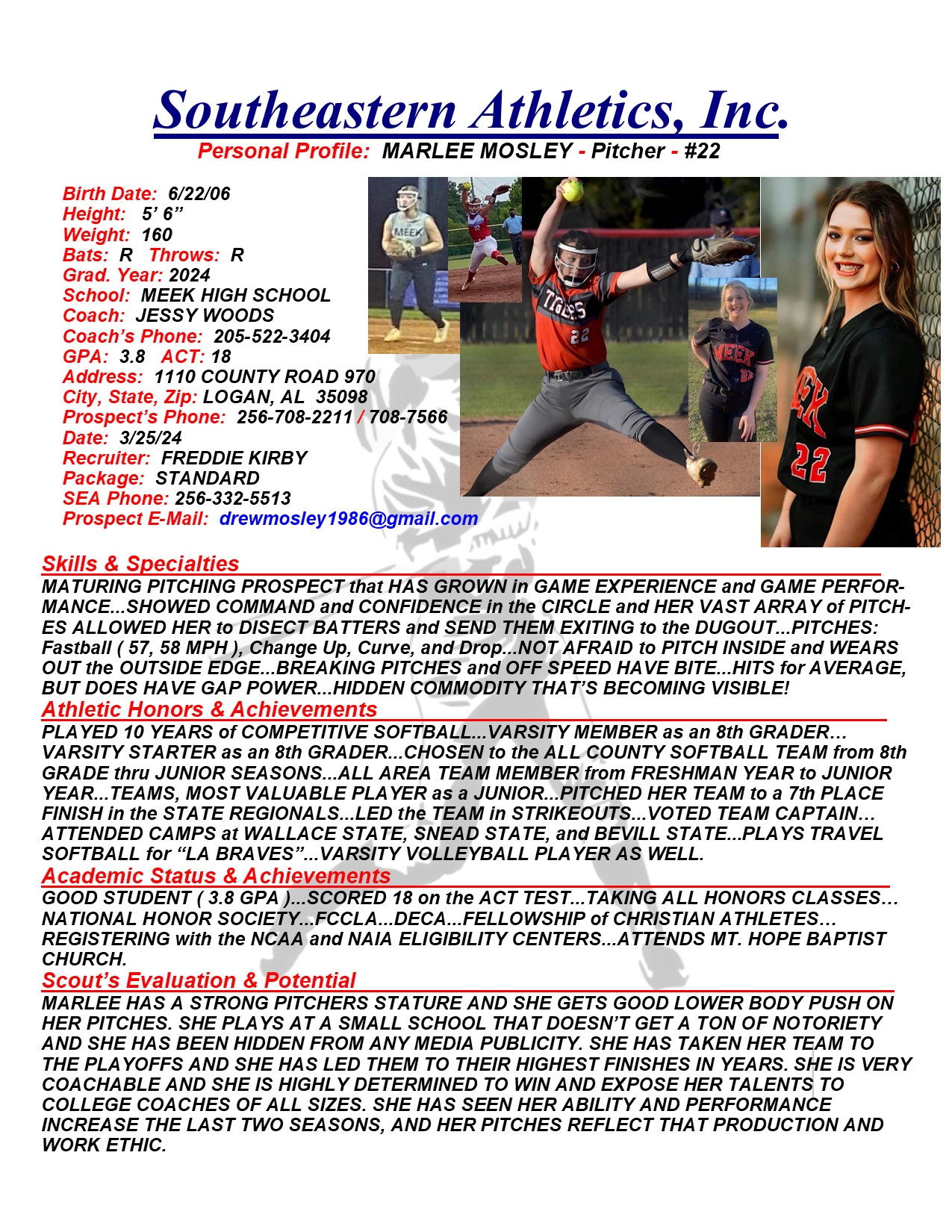 Marlee Mosley, 2024, Pitcher, Meek HS, AL