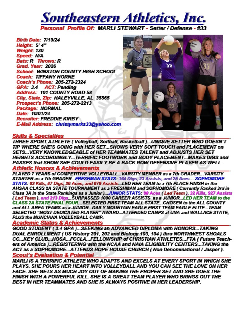 Marli Stewart, 2026, Setter / Defense, Winston County HS, AL