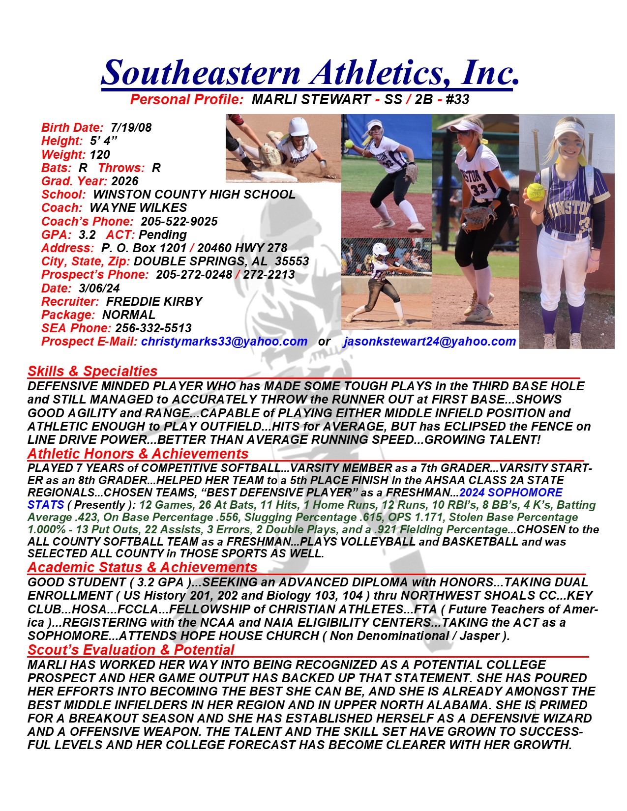 Marli Stewart, 2026, SS / 2B, Winston County HS, AL