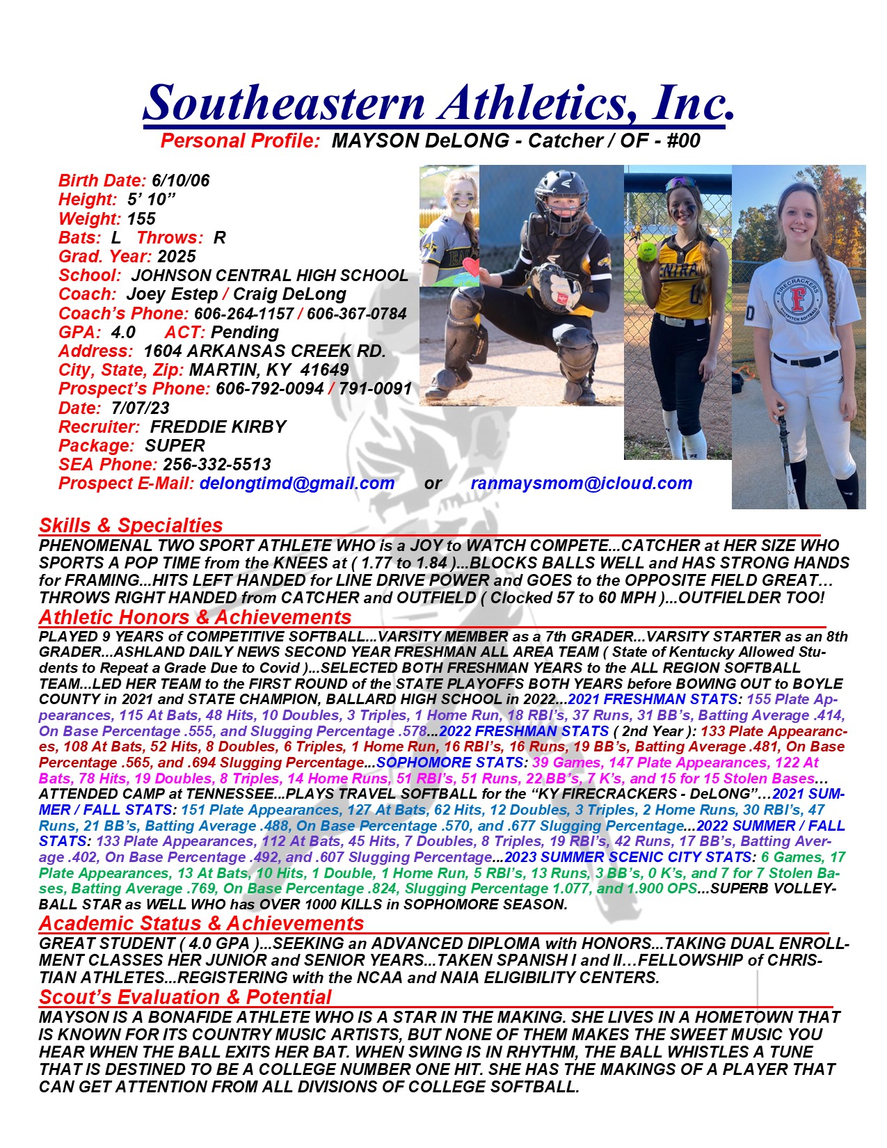 Mayson DeLong, 2025, Catcher / OF, Johnson Central HS, KY