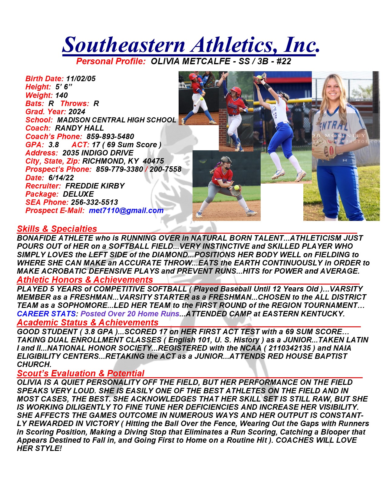 Olivia Metcalfe, 2024, SS / 3B, Madison Central HS, KY