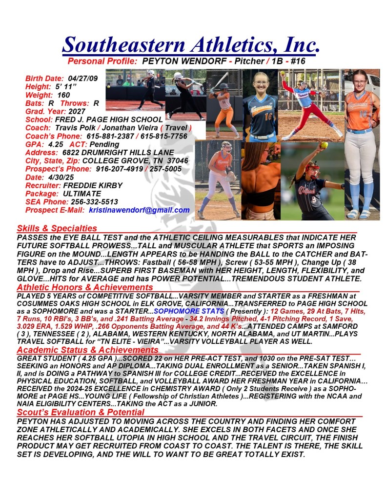 Peyton Wendorf, 2027, Pitcher / 1B, Fred J. Page HS, TN