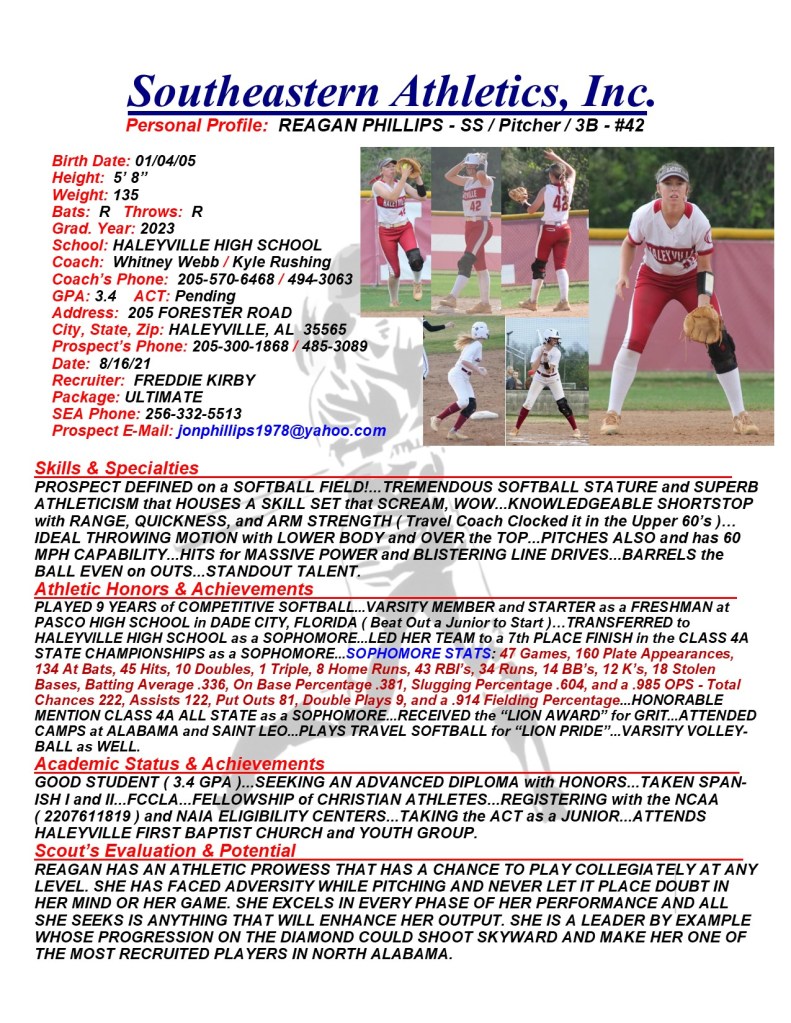 Reagan Phillips, 2023, SS / Pitcher / 3B, Haleyville HS, AL