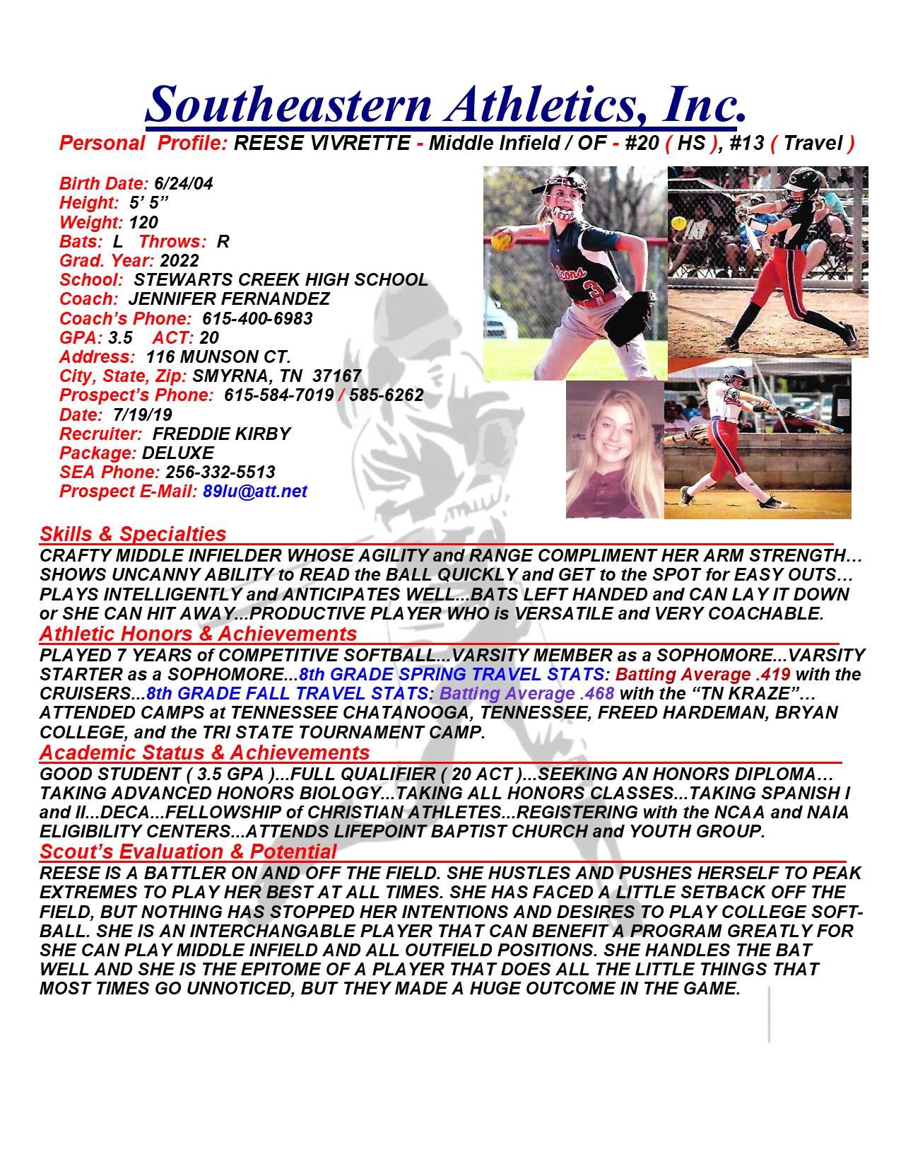 Reese Vivrette, 2022, Middle Infield / OF, Stewarts Creek HS, TN