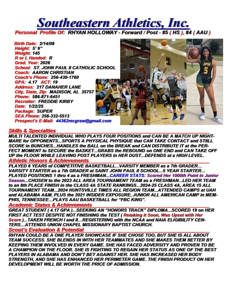 Rhyan Holloway, 2026, Forward / Post, St. John Paul II Catholic School, AL