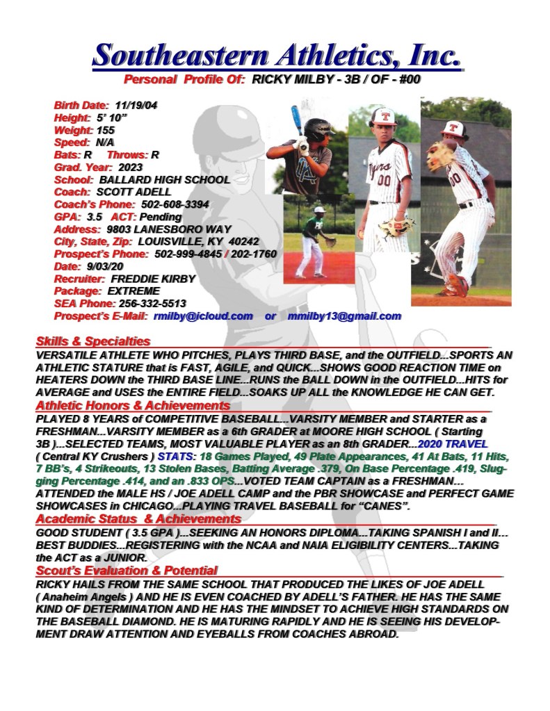 Ricky Milby, 2023, 3B / OF, Ballard HS, KY
