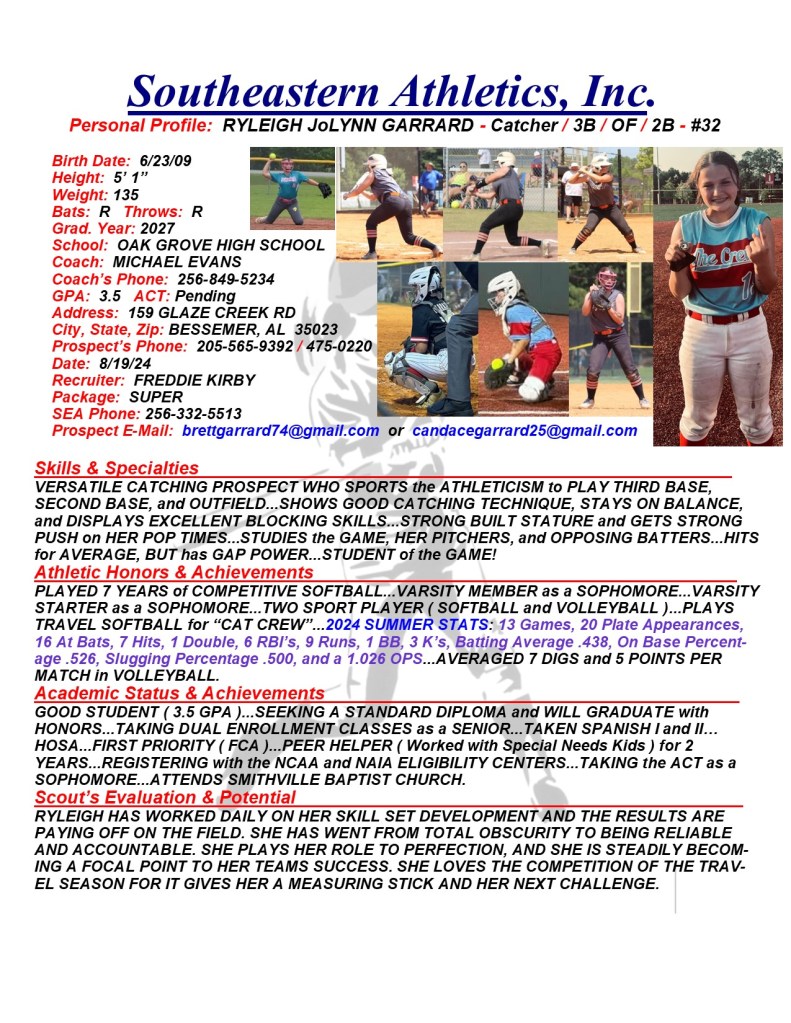 Ryleigh Garrard, 2027, Catcher / 3B / 2B / OF, Oak Grove HS, AL