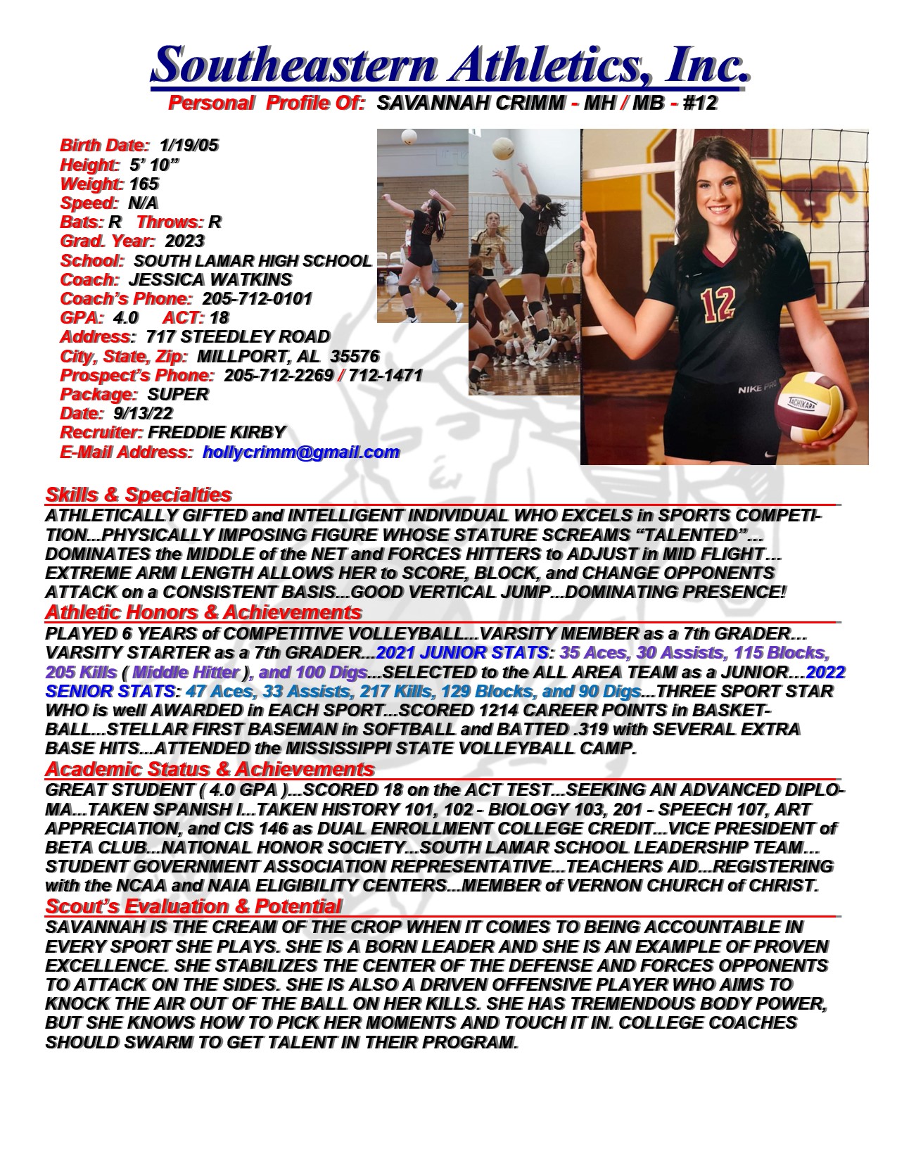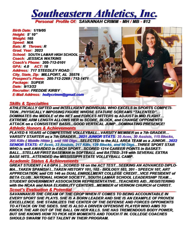 Savannah Crimm, 2023, MH / MB, South Lamar HS, AL