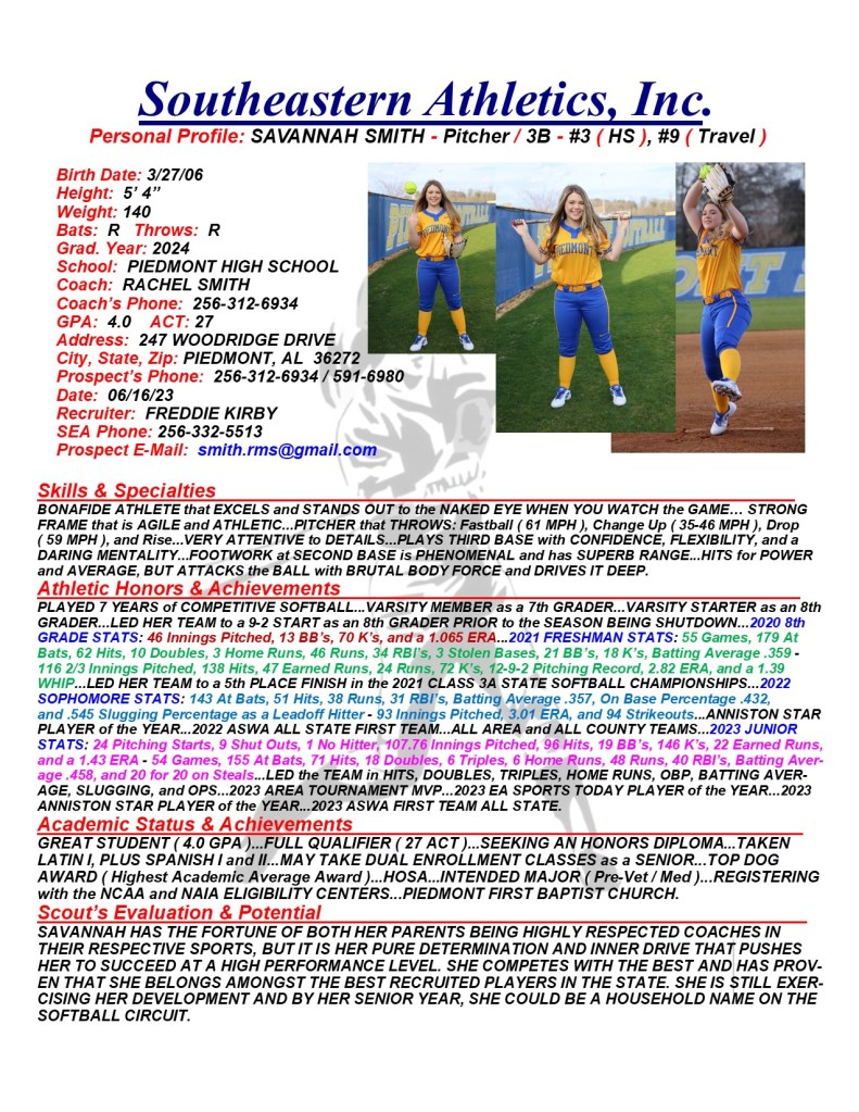 Savannah Smith, 2024, Pitcher / 3B, Piedmont HS, AL
