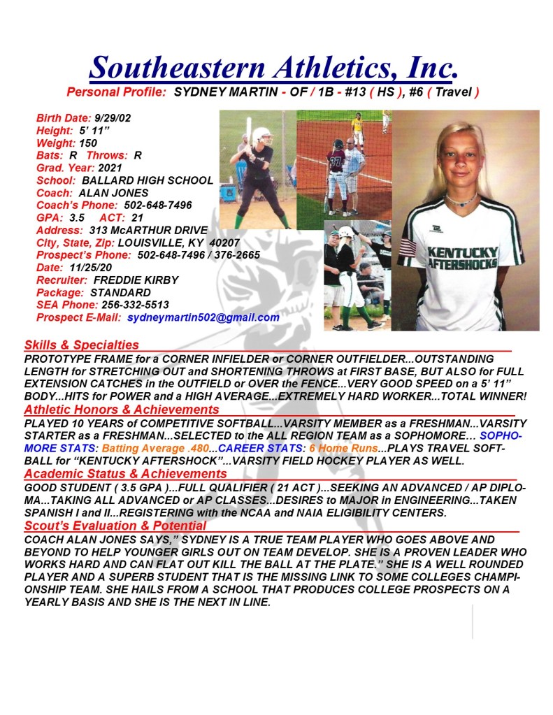 Sydney Martin, 2021, OF / 1B, Ballard HS, KY