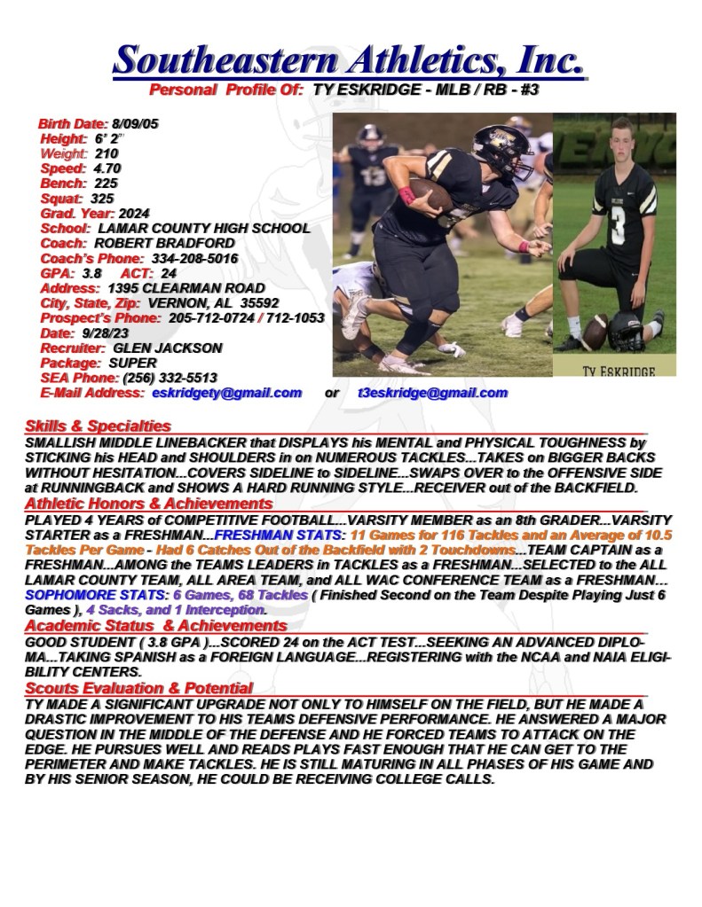 Ty Eskridge, 2024, MLB / RB, Lamar County HS, AL