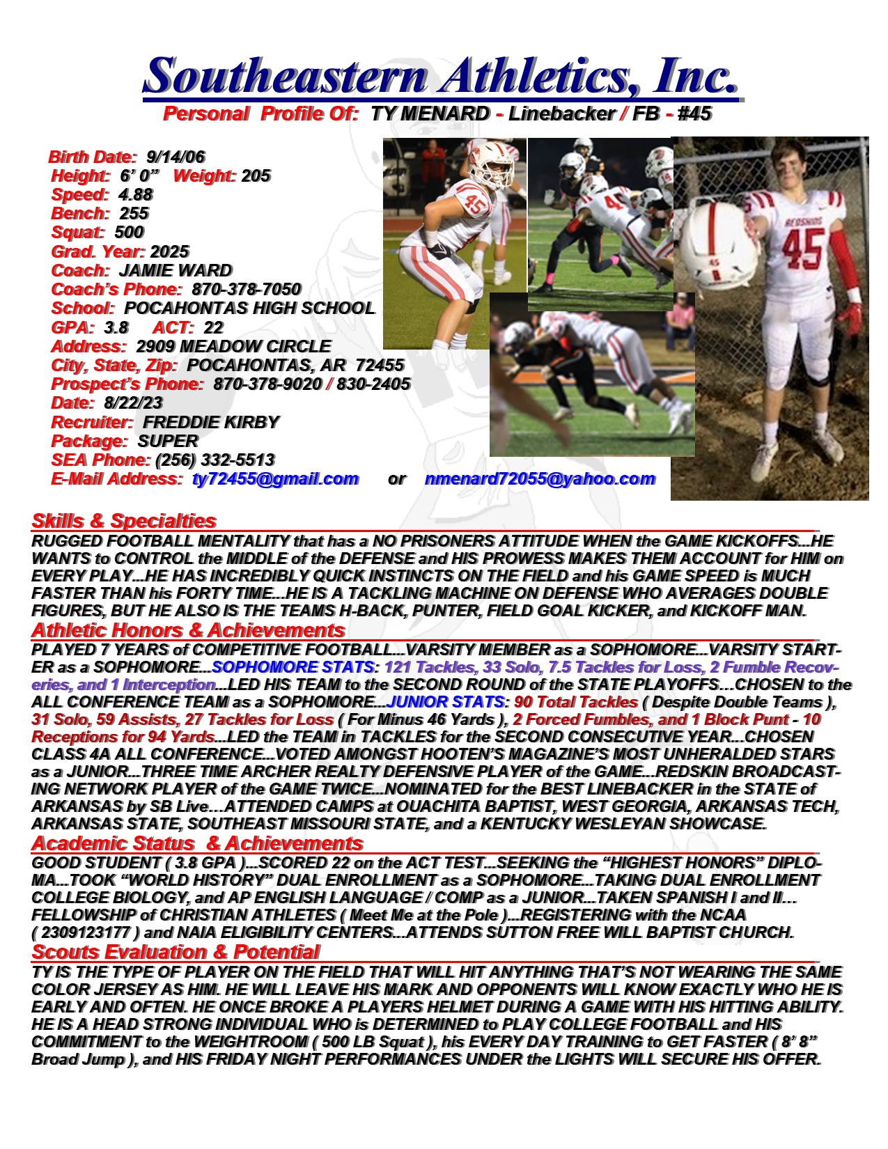 Ty Menard, 2025, Linebacker / FB, Pocahontas HS, AR