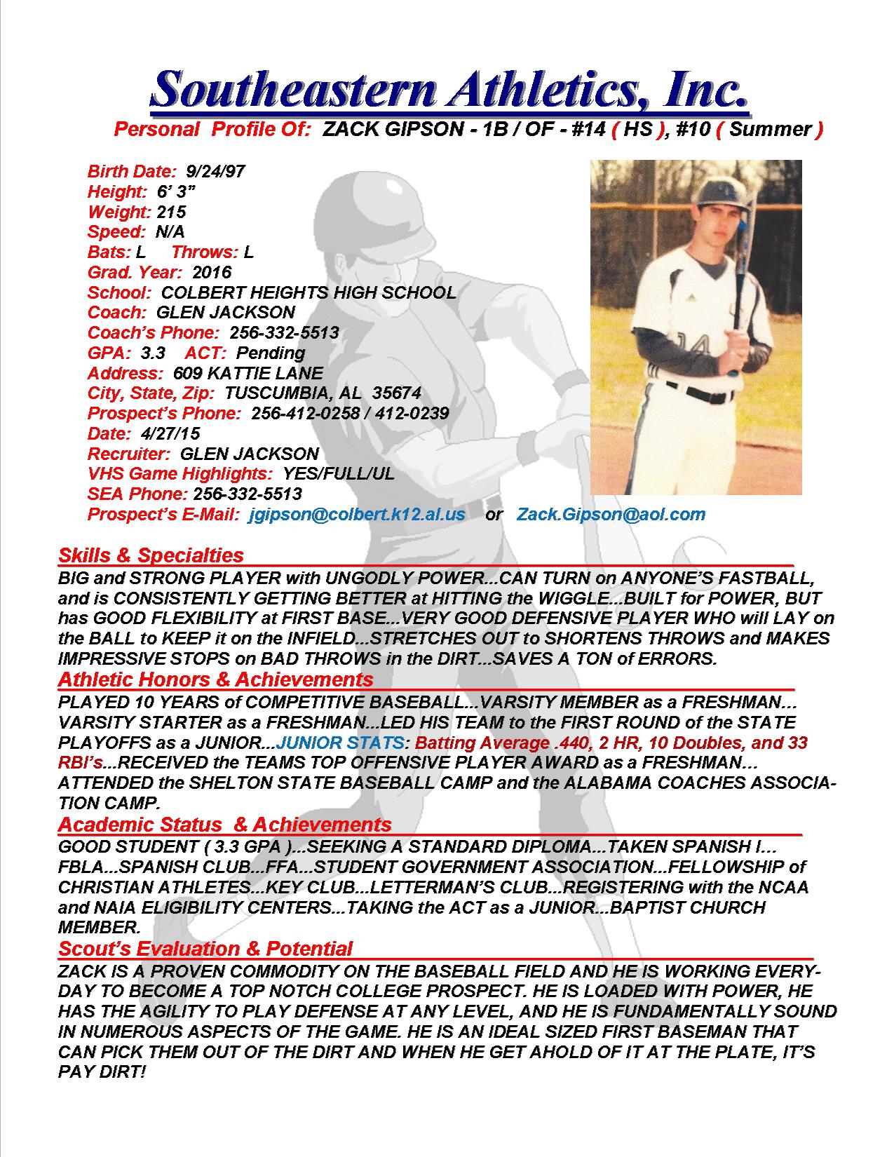 Zack Gipson, 2016, 1B / OF, Colbert Heights HS, AL
