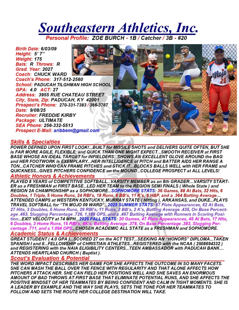 2025 Fall BP: https://my.sportsrecruits.com/athlete/zoe_burch?video=5948666
